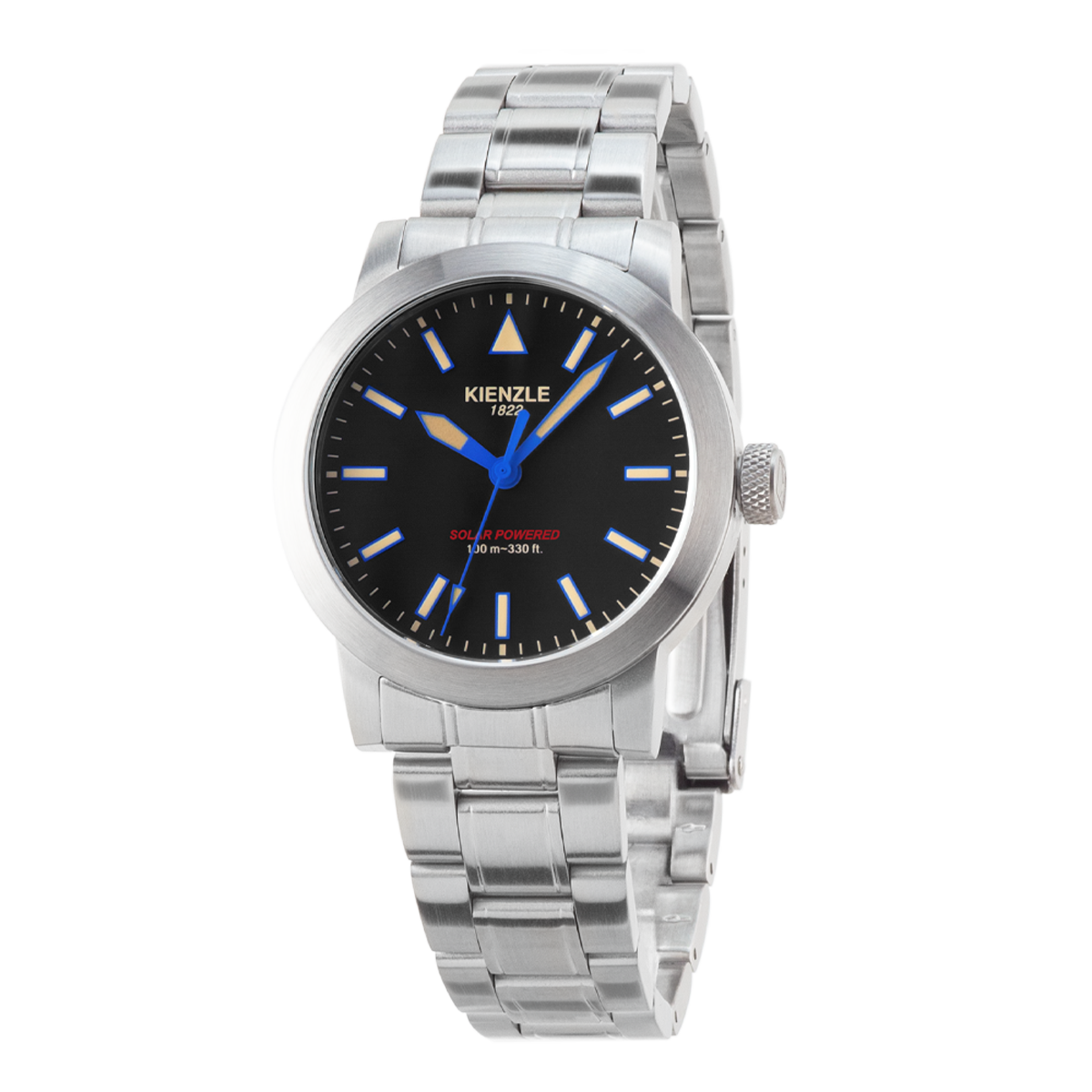 Flieger Solar is a watch that combines innovation and functionality, maintaining a clean style. The 39 mm brushed steel case houses a dial available in three colors: sand, military green, and black; designed for maximum readability thanks to the twelve indexes and luminescent hands.