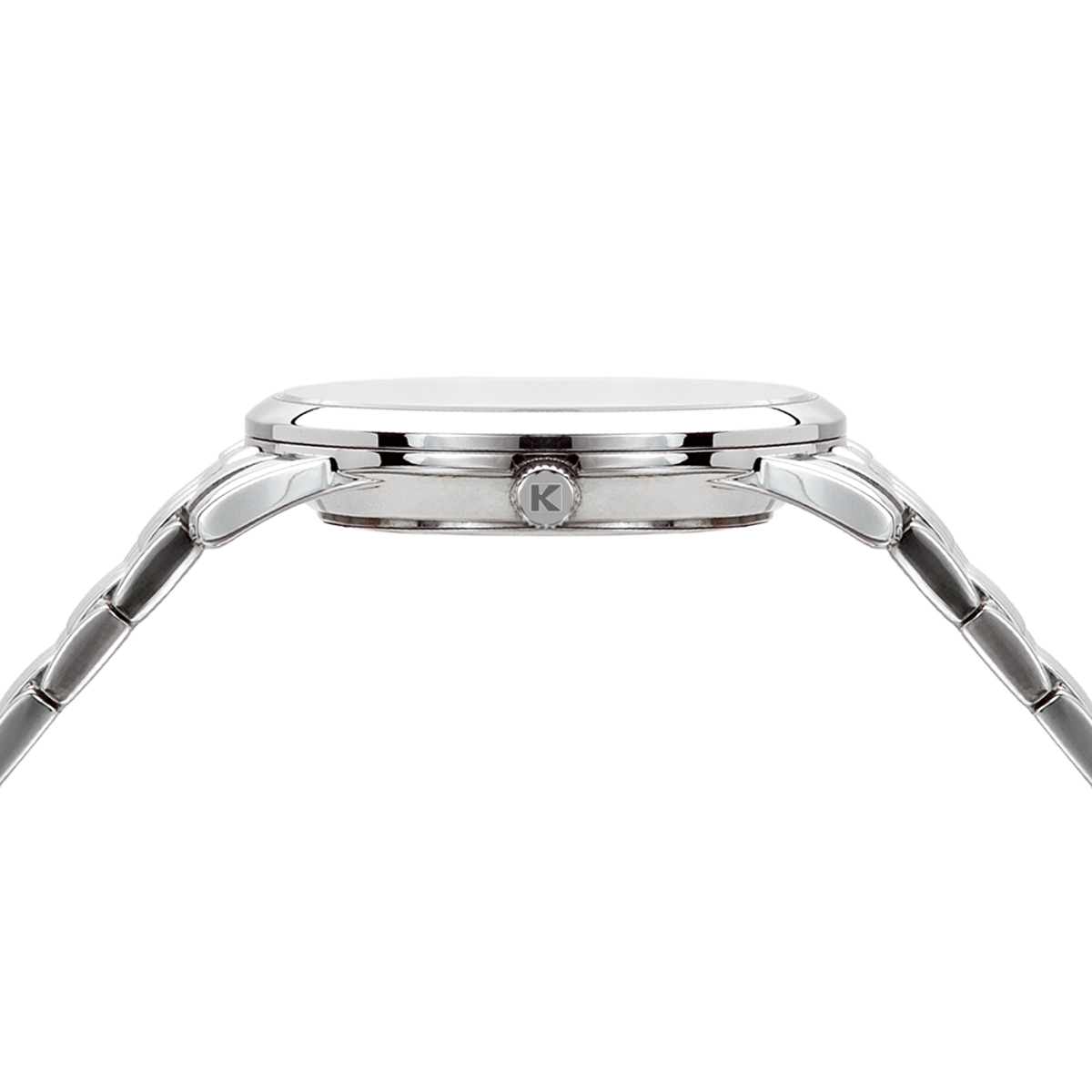 The Munich Lady is a women's watch of understated, timeless elegance. The round stainless steel case frames a finely crafted, white frappé-guilloché dial with Arabic numerals and slim black hands. The solid stainless steel bracelet completes the look with its clean, minimalist design. Equipped with a quartz movement and sapphire glass, it is the perfect watch for those who appreciate subtle accessories and want to wear them with grace and ease every day.