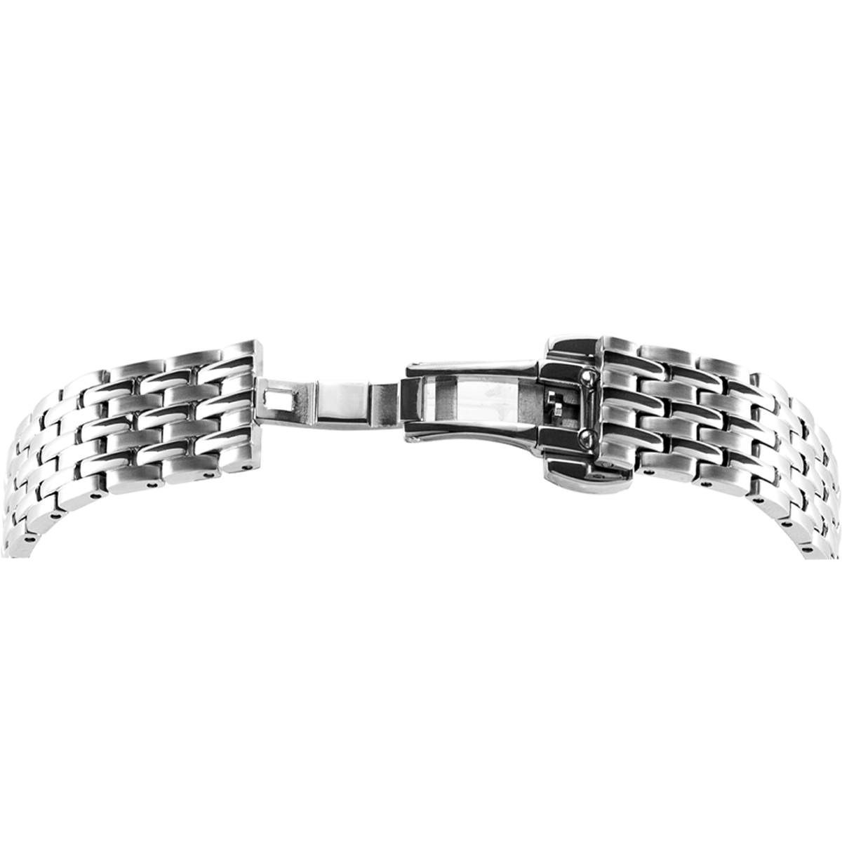 The Munich Lady combines German simplicity with timeless charm. With its round case, white frappé-guilloché dial, and solid stainless steel bracelet with folding clasp, it embodies clean lines and understated elegance. As simple as it is stylish.