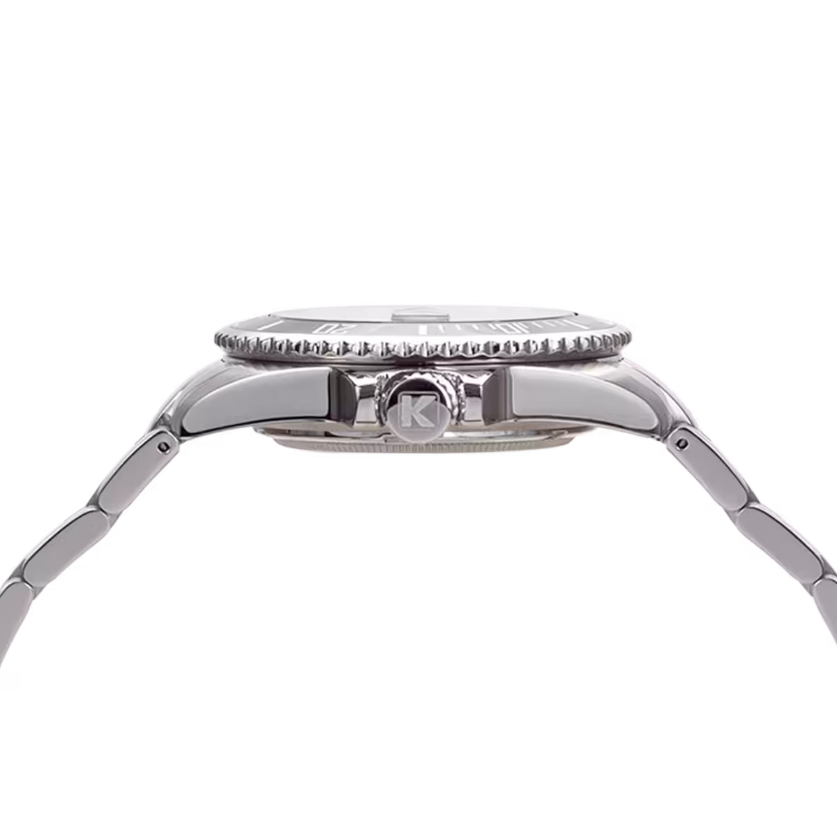 Elegance and functionality unite in this 40mm watch with a polished steel case. The polished dial with 12 indices and luminous hands is protected by a flat mineral glass with a magnifying lens at 3 o'clock. The unidirectional rotating ceramic bezel and the polished and satin-finished steel bracelet add a touch of class. The Miyota 2115 quartz movement offers reliability, while water resistance up to 20 ATM makes the watch ideal for water sports.